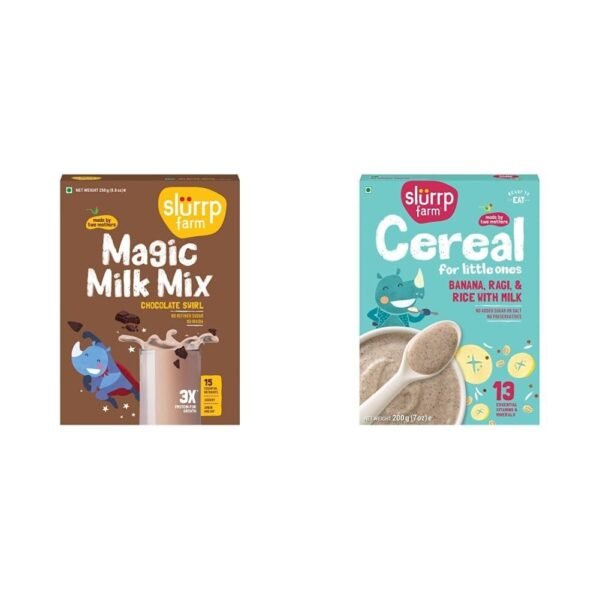 Slurrp Farm High Protein Chocolate Swirl Milk Mix 250g & Baby Cereal Ragi Rice and Banana with Milk 200g – Fast Shipping to USA & Canada