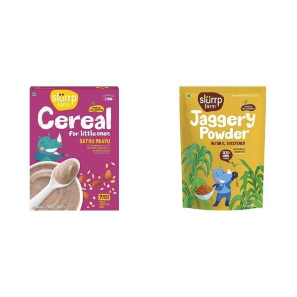 Slurrp Farm Sathu Maavu 100% Natural Multigrain Health Mix Ragi Dals & Almonds 200g & Slurrp Farm Natural Jaggery Powder 300g – Fast Shipping to USA & Canada