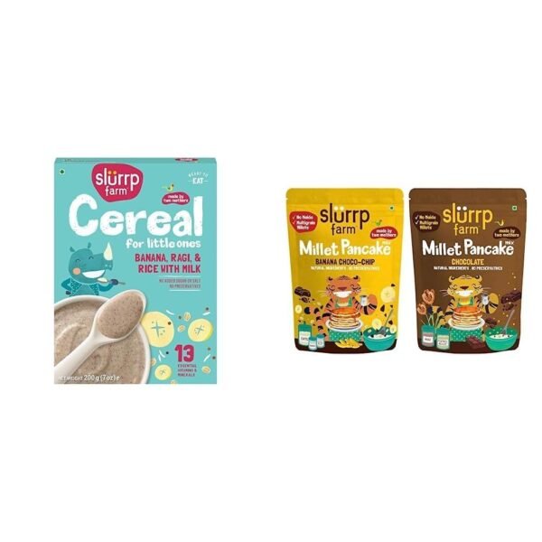 Slurrp Farm Organic No Sugar Baby Cereal Ragi Rice and Banana with Milk 200g & Instant Breakfast Millet Pancake Mix Banana Choco-Chip Supergrains Chocolate 150g – Fast Shipping to USA & Canada