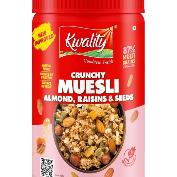Kwality Muesli Crunchy Almond & Raisins 900g Jar, 86% Multi Grains, Natural Source of Vitamin & Iron, High in Protein & Fiber, Low Fat & Cholesterol-Free, Healthy Food & Breakfast Cereal – Fast Shipping to USA & Canada
