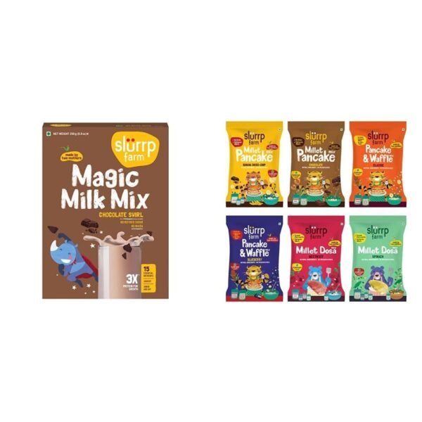 Slurrp Farm High Protein Chocolate Swirl Milk Mix 250g & Slurrp Farm Healthy Breakfast and Snacks Trial Pack Combo 6x50g – Fast Shipping to USA & Canada
