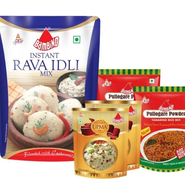 Bambino Breakfast Combo Mixes Pack of Rawa idli Each 500 Gms I Upma Mix Each 180 Gms X 2 Packets I Puligare Mix Each 100 Gms X 2 Packets – Fast Shipping to USA & Canada
