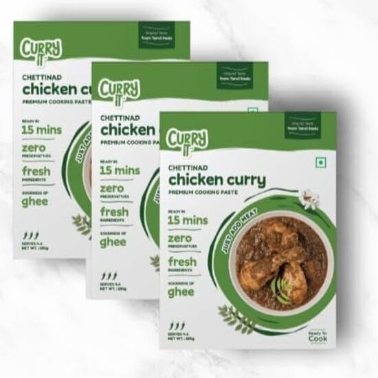 CURRYiT Chettinad Chicken Curry Paste Pack (3X250g) | Ready to Cook in 15 mins | Serves 4-6 | Just add Fresh Mutton, Meat, Fish | Goodness of Ghee | No Preservatives | Eat with Chawal Roti | Indian Masala Gravy – Fast Shipping to USA & Canada