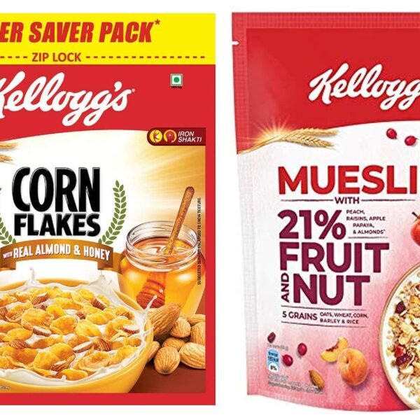 Kellogg’s Combo, Corn Flakes Real Almond And Honey, 1 Kg And Muesli With 21% Fruit And Nut Pouch, 750 G – Fast Shipping to USA & Canada