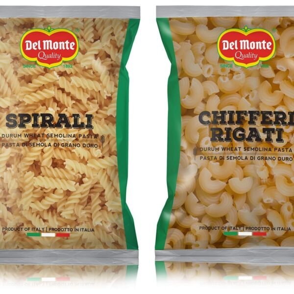 Del Monte Chifferi Pasta (Imported from Italy), 100% Durum Wheat Semolina, 1kg & Del Monte Spirali Pasta (Imported from Italy), 100% Durum Wheat Semolina, 1kg – Fast Shipping to USA & Canada