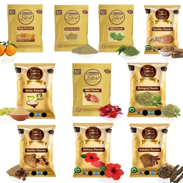 Online Quality Store Multani Mitti + Chandan + Orange + Neem + Rose + Amla + Reetha + Shikakai + Bhringraj + Hibiscus Combo (400g) – Fast Shipping to USA & Canada
