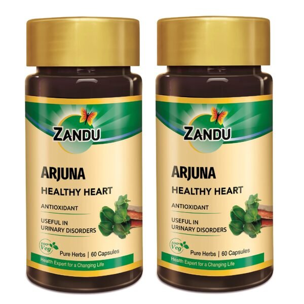 Zandu Arjuna Capsules – Helps to Maintain a Healthy Heart while Helping Keep Diabetes & Cholesterol Under Check, also Promotes Good Urinary Health – (Pack of 60 Veg capsules x 2) – Fast Shipping to USA
