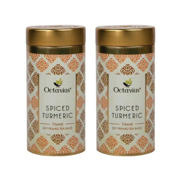 Octavius Spiced Turmeric Tea Pyramid Tea Bags Tin | Caffeine Free Digestive Herbal Tea for Weight Loss | Turmeric Blended with Indian Spices | Immunity Boosting Detoxifying Tea – 20 Tea Bags – Fast Shipping to USA & Canada
