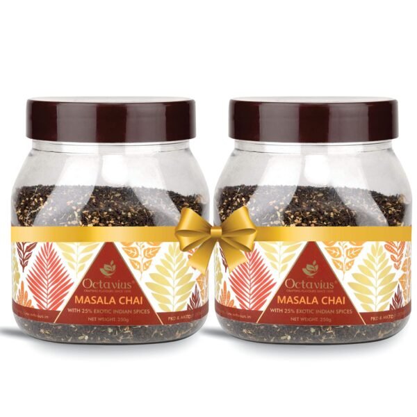 Octavius|Masala Chai -250 Gm Jar (Pack Of 2)|100% Natural Spices|Black Tea|Kadak Chai Patti|Premium & Refreshing Spiced Tea|Masala Chai Patti|Ayurvedic Herbs|Vedic Tea -(2 X 250 Gm Jar) – Loose Leaves – Fast Shipping to USA & Canada