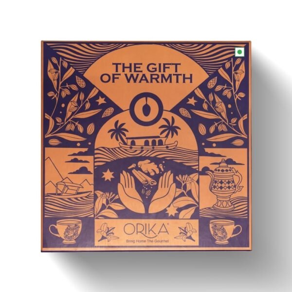 Orika Tea Gift Set | Includes Complimentary 4 Cups & 1 Wooden Spoon, 1 Premium Sugar-Free Kawah Tea Premix, 1 Idukki Bold Green Cardamom 25g, 1 Indian Chai Masala 70g | Perfect Winter Gift Box – Fast Shipping to USA & Canada