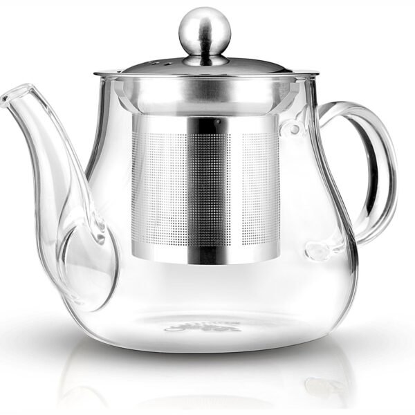 Octavius | Pear Shape Glass Tea Pot with Infuser – 600 ml | Borosilicate Glass | Heat Resistant | Green Tea Maker | Loose Leaf Tea Maker | Ideal for 4 Cups – Fast Shipping to USA & Canada