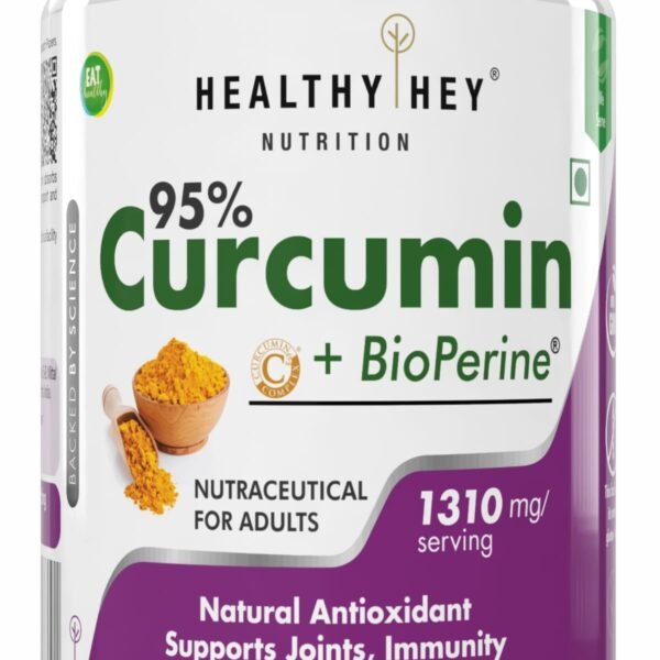 HealthyHey Nutrition Curcumin with Bioperine 1310mg (Ultra Pure) | Organic Turmeric, 60 Vegetable Capsules with Piperine – Fast Shipping to USA