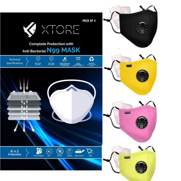 Xtore Certified N99 FDA CE Washable Ultra Comfortable Colored mask with Replaceable 5 layer filter (Pack of 4 mask and 8 filters,Black,Yellow,Orchid Pink,Lemon) – Fast Shipping to USA & Canada