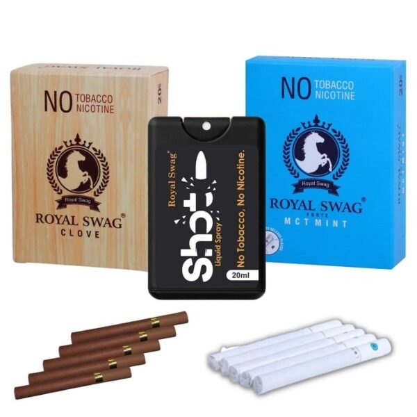 ROYAL SWAG Herbal Cigarette Mint, Clove Flavoured (40 Sticks) 100% NO Nicotine & NO Tobacco – (Smoking Cessation) With 100% Natural 20ML Shot Anti Addiction Spray | Pack Of 40 – Fast Shipping to USA & Canada