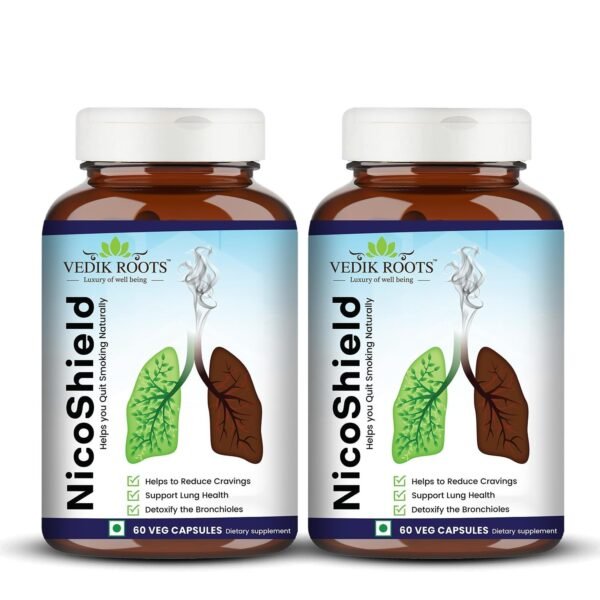 Vedikroots NicoShield | Herbal solution to Help Quit Smoking Naturally | Helps Reduce Craving To Smoke | Ayurvedic Herbal Supplement | 60 Veg Capsules (Pack of 2) – Fast Shipping to USA & Canada