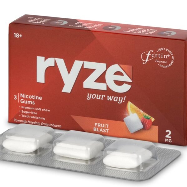 RYZE Fruit Blast Nicotine Gum 2 gm | Pocket-Friendly Pack of 50 (150 gums) | Freedom from Smoking & Tobacco | Easy on Throat | WHO & FDA Approved | Sugar Free | Teeth Whitening