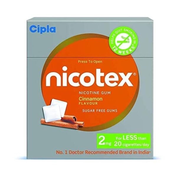 Cipla Nicotex Nicotine Sugar Free Cinnamon Gums 2mg | Helps to Quit Smoking | WHO – Approved Therapy | 12 Gums each pack | Pack of 2 – Fast Shipping to USA & Canada