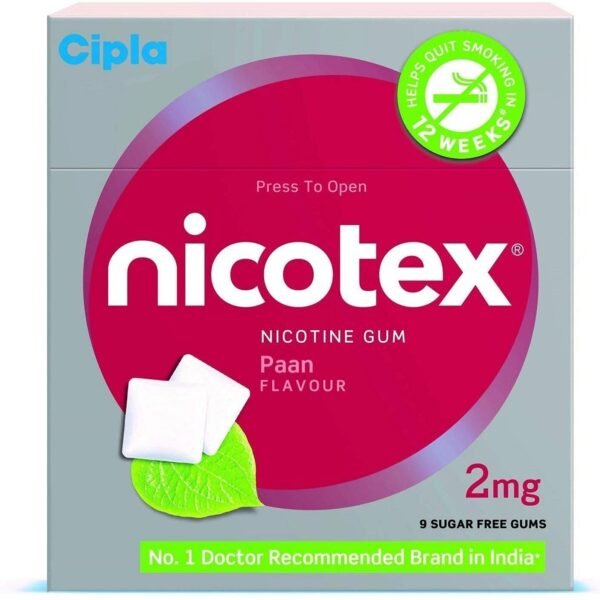 Cipla Nicotex Nicotine Sugar Free Paan Gums 2mg | Helps to Quit Smoking | WHO-approved Therapy | 12 Gums per Pack | Pack of 1 – Fast Shipping to USA & Canada