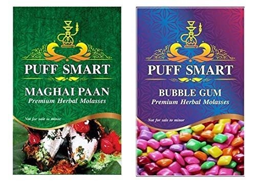 PUFF SMART Premium Herbal Molasses Maghai Paan and Bubblegum (Set of 2) 50gms Each(100% Tobacco and Nicotine Free) – Fast Shipping to USA & Canada
