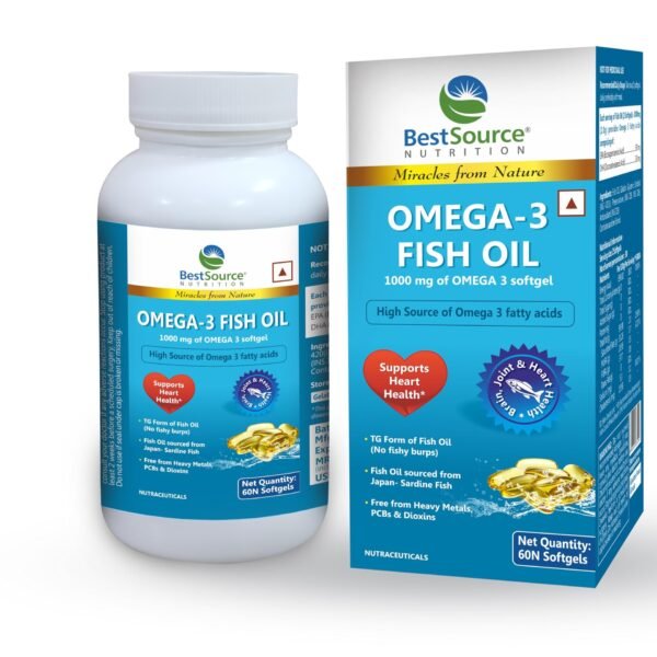 BestSource Omega 3 Fish Oil,(Upgraded EPA & DHA), 1000mg of Omega 3 capsule for healthy lipid profile, Free from Heavy Metals, PCBs, & Dioxins, No fishy smell, No burping, 60 softgels – Fast Shipping to USA