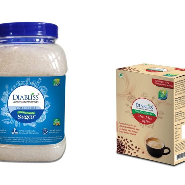 Diabliss Diabetic Friendly Sugar 1Kg Jar and 3-in-one Instant Coffee Premix – Low Glycemic Index(GI)