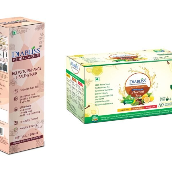 Diabliss Herbal Water for Hair Care 500 ml – Lemon, Ginger & Masala Tea Each 10 x 10g Sachets Combo Pack