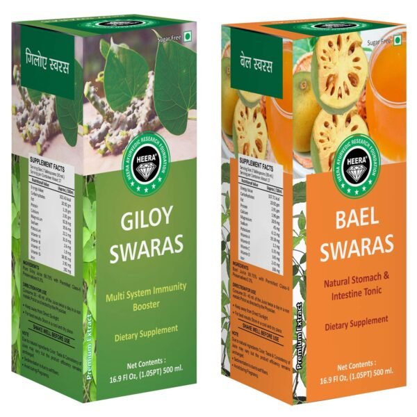 Heera Ayurvedic Research Foundation Cholestrol Controls Bael Juice (500 ml) + Energy Booster Sugar Free GILOY JUICE Extract (500 ml)- Pack of 2 – Fast Shipping to USA