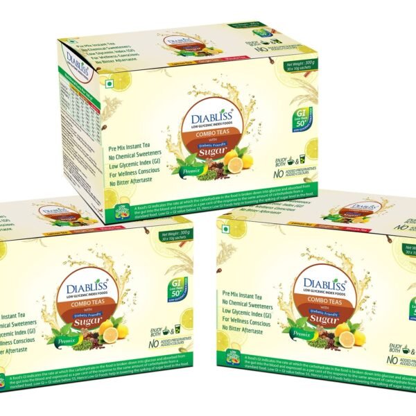 Diabliss Diabetic Friendly Herbal Tea Premix Combo Pack – Lemon, Ginger, Masala Chai – 30 x 10g Sachets – Pack of 3(90 Sachets) Sugar Free Alternative