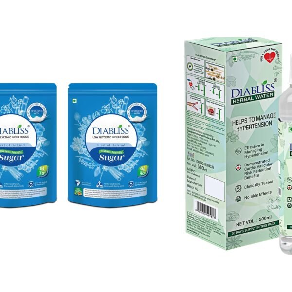 Diabliss Diabetic Friendly Herbal Cane Sugar – Free from Chemicals/Artificial Sweeteners – Low Glycemic Index (GI) – 500g Pouch (500g (Pack of 2) + Hypertension Management)