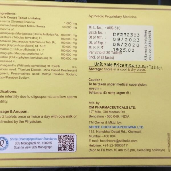Dhootapapeshwar Beejpushti Rasa,Pack of 1, 30 Tablets – Fast Shipping to USA