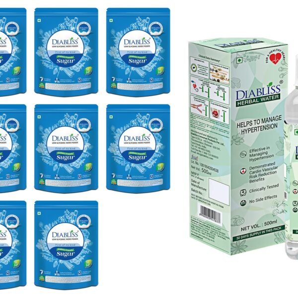 Diabliss Diabetic Friendly Herbal Cane Sugar – Free from Chemicals/Artificial Sweeteners – Low Glycemic Index (GI) – 500g Pouch (500g (Pack of 8)+Hypertension Management)