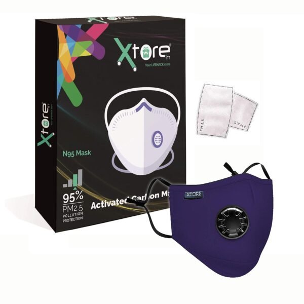 Xtore Color Pro N-95 Anti Pollution Mask | Ultra Comfortable – (1 Mask, 2 Filters, Navy Blue) – Fast Shipping to USA & Canada
