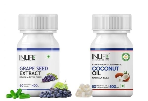 INLIFE Grape Seed Extract with Coconut Oil 500mg – 60 Capsules – Fast Shipping to USA & Canada