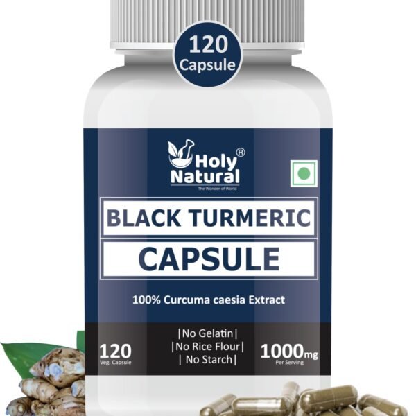 Holy Natural Black Turmeric Capsules – 120 Capsules (500 mg/cap) | 100% Potent Black Turmeric Powder Use | 100% Pure and Natural Capsules
