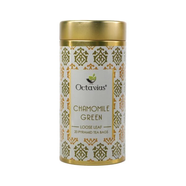 Octavius Chamomile Green Tea-|Superior Loose Leaf Flavour Experience with Absolute Ease|Loaded with Antioxidants | Calming & Soothing Tea| Enhances Mood & Cognition|Reduces Stress|20 Pyramid Tea Bags – Fast Shipping to USA & Canada