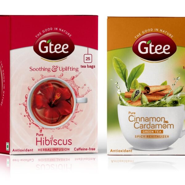 GTEE Hibiscus Tea Bags & Green Tea Bags – Cinnamon & Cardamom, 25 Tea bags (Pack of 2) – Fast Shipping to USA & Canada