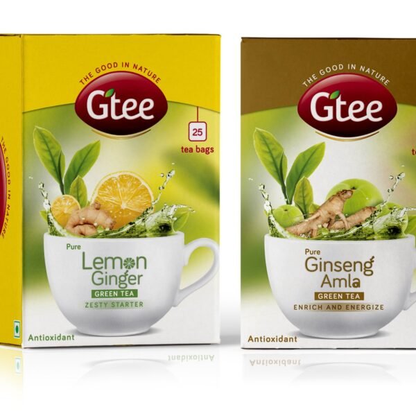 GTEE Green Tea Bags – Lemon & Ginger & Green Tea Bags – Ginseng, 25 Tea bags (Pack of 2) – Fast Shipping to USA & Canada