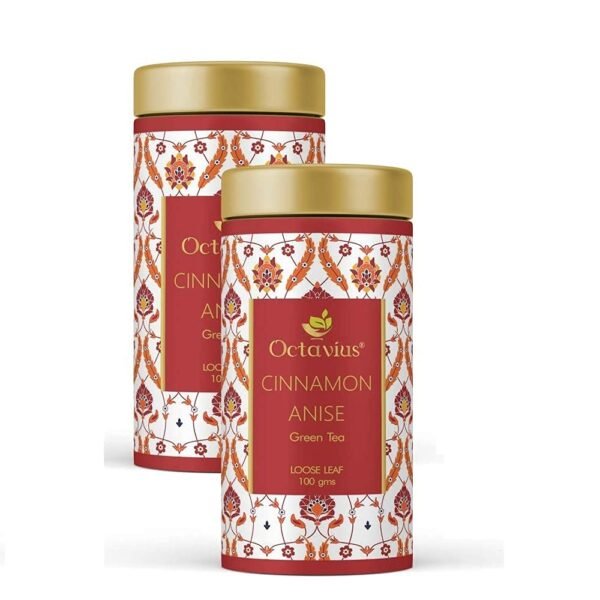 Octavius Cinnamon Anise Green Tea Tin Can – 100 Gms (50 Cups) Natural Cinnamon & Star Anise | Promotes Weight Loss & Improves Immunity | Packed in Decorative Tin Box – (Pack of 2) – Fast Shipping to USA & Canada