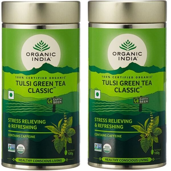 Organic India Tulsi Green tea tin 100 gm (pack of 2) – Fast Shipping to USA & Canada