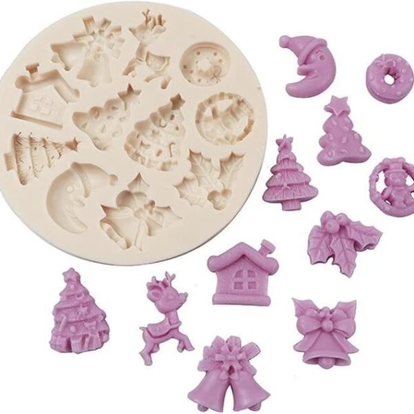 Husaini Mart Christmas Theme Silicone Fondant Mold, 9.5×9.5x1cm, Tree Reindeer Bell Ornaments Sugarcraft Mould for Chocolate, Cupcake, Cake Decorating – Fast Shipping to USA & Canada