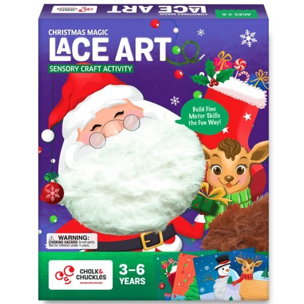 Chalk and Chuckles Christmas Magic Lace Art Kit for Kids, Mess-Free DIY Lacing Craft Activity, Creative Fine Motor Skills Toy, Holidays or Birthday Gift for Girls, Boys Ages 3 4 5 6 7 Years – Fast Shipping to USA & Canada