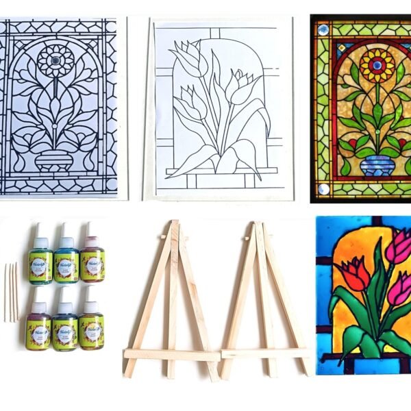 The Brown Box DIY Glass Painting Kit ? Acrylic Sheets (15?20 cm), 6 Glass Colors, Outliner, Design Templates & Easel Stands ? Hobby Craft Kit for Kids & Adults, Corporate Workshops, Diwali DIY Activity & Gift – Fast Shipping to USA & Canada