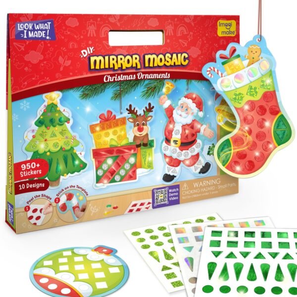 Imagimake Mirror Mosaic : Christmas Ornaments | Mess Free DIY Mosaic Art & Craft Kit | 950+ Foil Sticker | Travel Toys | Christmas Gift for Kids Ages 3,4,5,6,7,8,Multicolor – Fast Shipping to USA & Canada