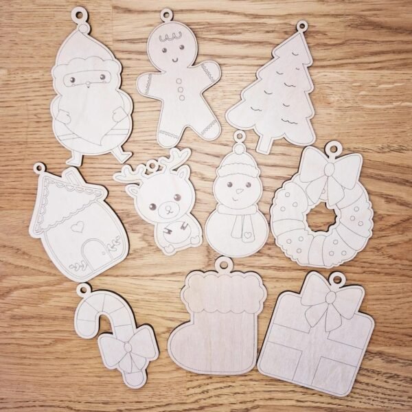 Pack of 10 | Wooden MDF Christmas Paint Your Own Kit | 3 Inch PYO Craft Shapes with Paint Set | Kids DIY Xmas Decorations | Christmas Tree Decoration Items | Christmas Hanging Decor – Fast Shipping to USA & Canada