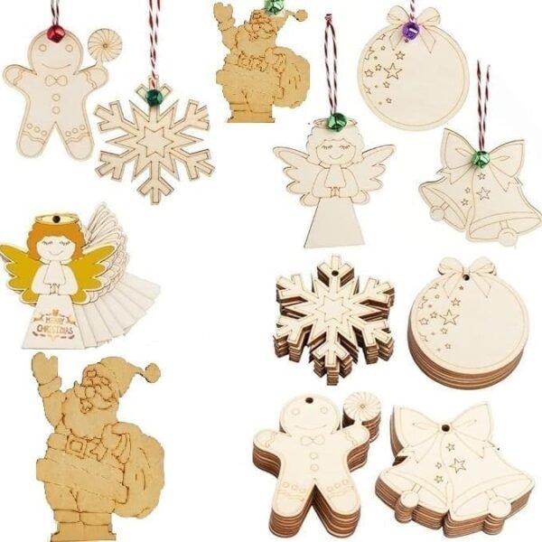 IVYLA Kids Wooden Christmas Craft Kit | 15 MDF Cutouts & Unfinished Wood Slices for DIY Christmas D?cor | Perfect for Holiday Tree Decorations, Art & Craft Work,Classroom Activities & Gift Projects – Fast Shipping to USA & Canada