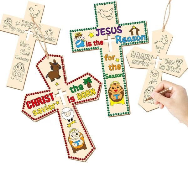 Cliths 20Pcs Christmas Wooden Cross Craft Kit for Kids DIY Make Your Own Nativity Cross with Gem Stickers Christian Religious Xmas Craft for Church, School, Party Decorations – Fast Shipping to USA & Canada