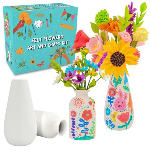 FTBox Crafts Kit for Girls Ages 6-12, Felt Flowers Bouquet and Paint Vase Art Craft Project for Girls, DIY Activity Christmas Birthday Gift for Kids Age 8 9 10 11 12 Year Old (Ceramic Vases) – Fast Shipping to USA & Canada
