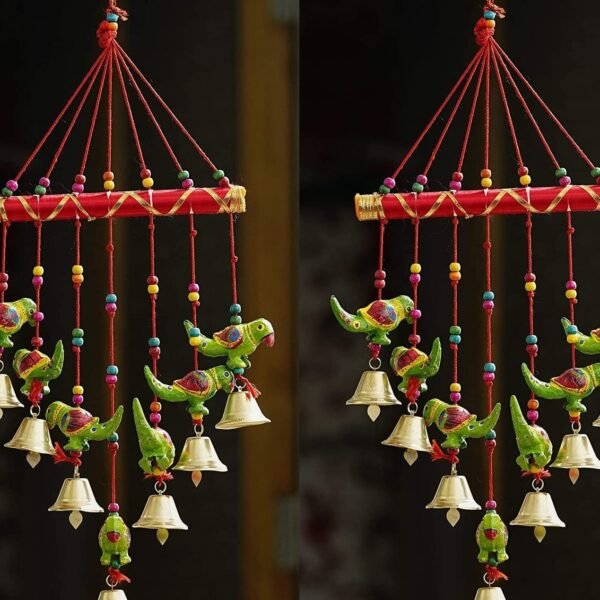 JaipurCrafts Handcrafted Rajasthani Bells Birds Parrot Design Wood Door Wall Hanging Decorative Showpiece for Home and Office Decor Diwali Gift Items – 45 cm (Wood) (Pack of 2) – Fast Shipping to USA & Canada