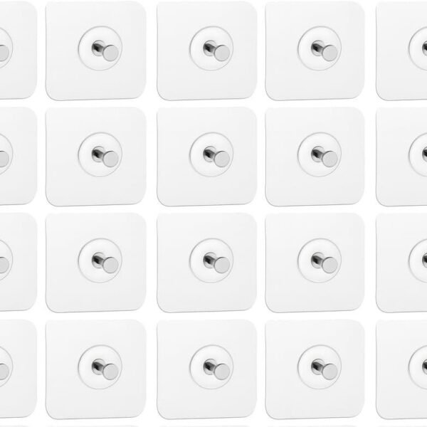 Xtore Wall Sticker Hooks | Ready to Hang Adhesive Hooks | Strong Sticky Hooks for Keys, Towels, Bags | No Drilling Required | White Square Design – Pack of 20 – Fast Shipping to USA & Canada