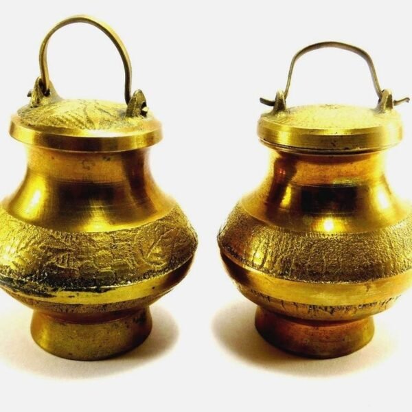 Beautiful Handicraft Brass Holy Gangajal/Milk Lota/Kamandalu/Kalash (Two Pieces) with Cover and Handle for Puja, Decor and Gifts – Fast Shipping to USA & Canada